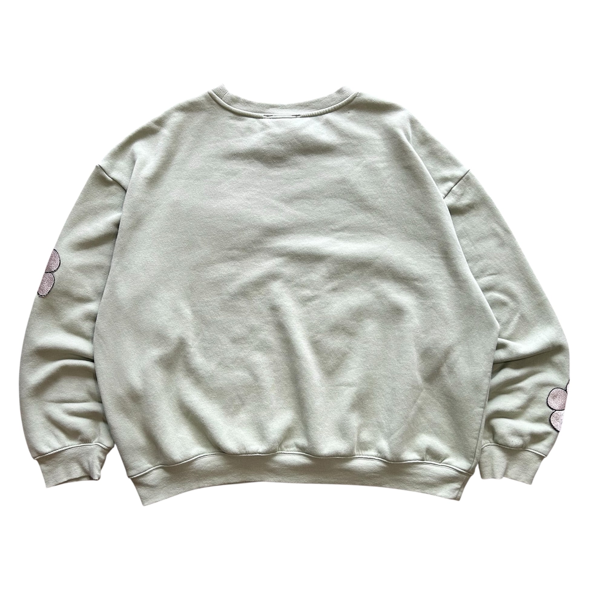 -This sweater is 1/1 and the embroidered patches were designed and made in home.